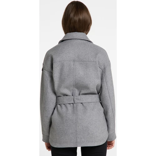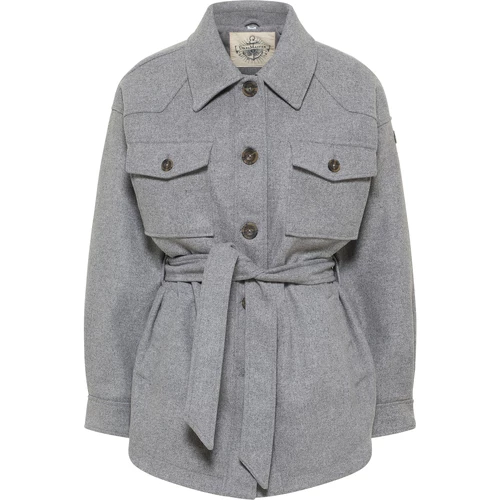 Zeitlos-klassisch geht es mit dieser grauen Übergangsjacke von DreiMaster Vintage in den Herbst. Ein typischer Klappkragen, der leicht legere Fall und der Bindegürtel setzen lässige Akzente. Unterstrichen wird die modische Note noch durch die praktischen, aufgesetzten Brusttaschen und die Knöpfe in Hornoptik. Gerundete Säume und eine leicht taillierte Form hauchen der Silhouette einen femininen Look ein. Eine ideale Übergangsjacke, die dank des weichen Materialmixes mit Wolleanteil auch für sichere Wärme sorgt.