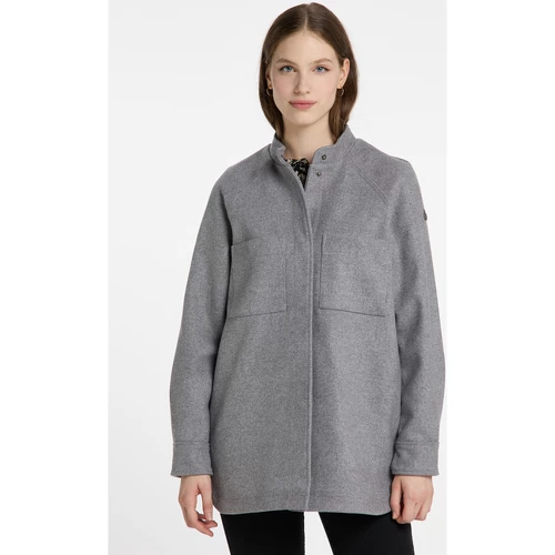 Dieser grau melierte Kurzmantel von DreiMaster Vintage lehnt an ein oversized Hemd an, das mit Druckknöpfen verschlossen wird und über einen kleinen Stehkragen verfügt. Die sportlich anmutenden Raglanärmel lockern das Design auf und setzen einen lässigen Twist. Das locker fallende Design mit kleinen Seitenschlitzen und abgerundetem Saum besteht aus einem mittelschweren Materialmix mit Wollanteil und wird von zwei seitlichen Eingrifftaschen sowie zwei Brusttaschen komplettiert.