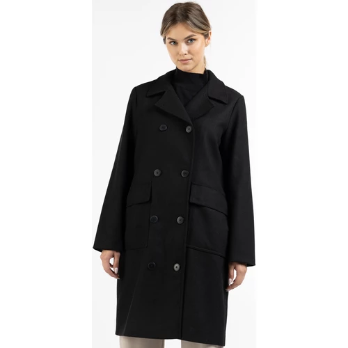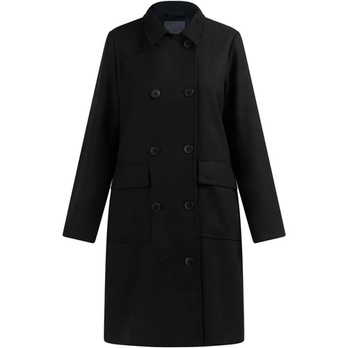 Pure Eleganz zeigt der Übergangsmantel von DreiMaster Klassik. Gefertigt aus einem Wollgemisch besitzt er eine doppelte Knopfreihe und einen Reverskragen. Elegante Femininität zaubert der gerade Silhouette, während das weiche Obermaterial auch an kühleren Tagen wärmt. Die zwei aufgesetzten Taschen sind mit Druckknöpfen versehen. Ein dezent-edles gesticktes Ton-in-Ton DreiMaster Klassik-Label am linken Ärmel rundet den zeitlosen Klassiker ab.