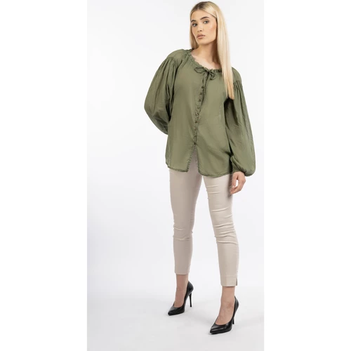 About You Material: Doublure : pas de doublure; matériel de dessus : 100% cotonArtikelnummer: 37325760Ausschnitt: Col rondBlusen-Stil: Chemisier à enfilerBreite: 55,5cmDetails: aucun / sans objetFarbe (Produkt): OlivgrünFutter: sans doublureGesamtlänge/Rückenlänge Größe S: 6,5 cmGrößenflag: taille normalKragen: aucun / sans objetLagen: non spécifiéLänge: moyenMaterial: 100% cotonMaterial Oberstoff: 100% cotonMaterial-Eigenschaft: CotonMuster: uniOberteillänge: normalPassform: décontractéPflegehinweise: Lavage à 30° en cycle doux, ne pas blanchir, ne pas sécher en machine, repasser à froid, ne pas nettoyer, ne pas utiliser d’adoucissant, ne pas faire tremperProdukttyp: Blouse à manches longuesSaison: HW22Saum: ourlet droitSondergröße: non spécifiéStil Strick: ChemisiersTaschen: aucun / sans objetTechnologie Jeans: non spécifiéVerschluss: aucun / sans objetZielgruppe: femmesÄrmelart: manche longueÄrmellänge: manche longueFarbe: vert oliveLeichte BaumwollbluseGeraffter AusschnittSilhouette décontractéeDe larges manches ballonFabriqué en Italie
