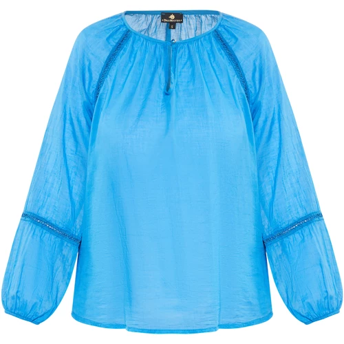 About You Material: Doublure : pas de doublure; matériel de dessus : 100% cotonArtikelnummer: 37325766Ausschnitt: Col rondBlusen-Stil: Chemisier à enfilerBreite: 4,6cmDetails: AutreFarbe (Produkt): BlauFutter: sans doublureGesamtlänge/Rückenlänge Größe S: 60,5cmGrößenflag: taille normalKragen: aucun / sans objetLagen: non spécifiéLänge: moyenMaterial: 100% cotonMaterial Oberstoff: 100% cotonMaterial-Eigenschaft: CotonMuster: uniOberteillänge: normalPassform: décontractéPflegehinweise: Lavage à 30° en cycle doux, ne pas blanchir, ne pas sécher en machine, repasser à froid, ne pas nettoyer, ne pas utiliser d’adoucissant, ne pas faire tremperProdukttyp: Blouse à manches longuesSaison: HW22Saum: ourlet droitSondergröße: non spécifiéStil Strick: ChemisiersTaschen: aucun / sans objetTechnologie Jeans: non spécifiéVerschluss: BoutonZielgruppe: femmesÄrmelart: manche longueÄrmellänge: manche longueFarbe: bleuWeite BaumwollbluseDetails an Schultern und ÄrmelnCoupe décontractéeDe larges manches ballonPoignets élastiquesKnopf am AusschnittFabriqué en Italie