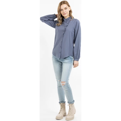 About You Material: Doublure : pas de doublure; matériel de dessus : 100% cotonArtikelnummer: 37324859Ausschnitt: col hautBlusen-Stil: blouse classiqueBreite: 47cmDetails: à volantsFarbe (Produkt): GraublauFutter: sans doublureGesamtlänge/Rückenlänge Größe S: 6,0cmGrößenflag: taille normalKragen: Col à volantsLagen: non spécifiéLänge: moyenMaterial: 100% cotonMaterial Oberstoff: 100% cotonMaterial-Eigenschaft: CotonMuster: uniOberteillänge: normalPassform: normalPflegehinweise: Cycle doux de lavage à 30°, ne pas blanchir, ne pas sécher en machine, ne pas repasser, ne pas nettoyer, ne pas utiliser d’adoucissant, ne pas tremperProdukttyp: Blouse à manches longuesSaison: HW22Saum: ourlet droitSondergröße: non spécifiéStil Strick: ChemisiersTaschen: aucun / sans objetTechnologie Jeans: non spécifiéVerschluss: Panneau à boutonsZielgruppe: femmesÄrmelart: manche longueÄrmellänge: manche longueFarbe: Gris-bleuBaumwollbluse mit RüscheGerüschter StehkragenRüsche an der KnopfleisteCoton purGelegte Falten an der ManschetteCoupe régulière