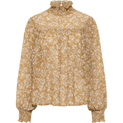Ein zartes Blütendessin definiert den romantischen Look der DreiMaster Vintage Bluse. Unterstützt wird das Design dabei durch den hochgeschlossenen, elastischen Kragen, der mit zwei Knöpfen auf der Rückseite geschlossen wird sowie durch die elastischen Ärmelenden. Das leichte, semitransparente Material trägt sich unkompliziert und vollendet das Gesamtbild. Wir tragen den femininen Romantik-Style mit Vorliebe zu stylishen Boots und derben Denim.