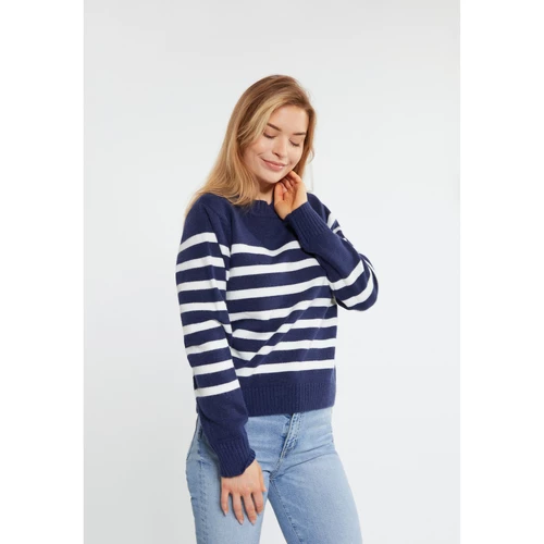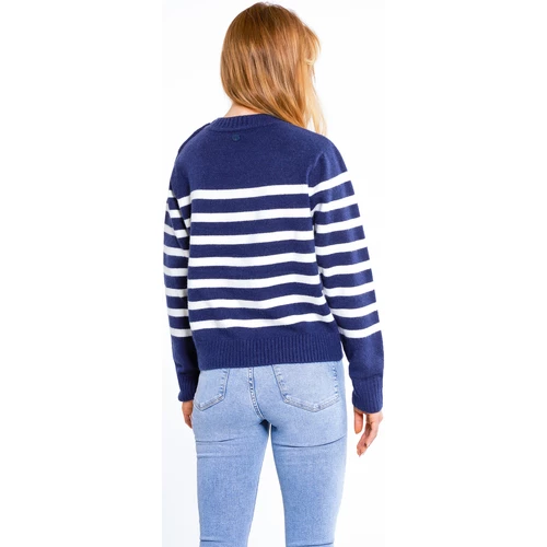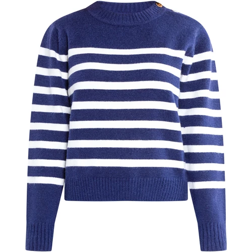 Der maritime Streifenlook dieses Pullovers sorgt auch im Winter für einen Frischekick. Das weiche Garngemisch trägt sich angenehm, während die Schulterpartien von gravierten Knöpfen verziert wurden. Der Pullover ist leicht elastisch, was man besonders am Rundhalskragen, an den Ärmelabschlüssen sowie am Saum merkt. Dies sorgt für ein besonders komfortables Tragegefühl.