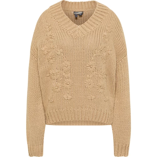 Der legere Grobstrickpullover von DreiMaster Vintage frischt Ihre Looks auf und besticht durch die florare Applikation auf der Vorderseite. Das weiche Garn hat dabei einen sehr angenehmen Griff und auch der Schnitt des Pullovers überzeugt mit einem dezenten Oversized-Fit plus überschnittenen Schultern.