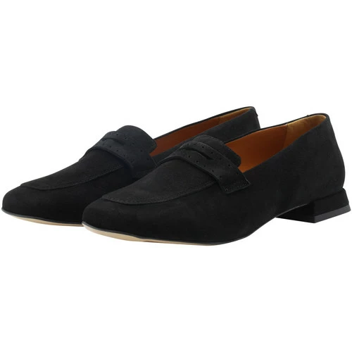 Im femininen Design präsentieren sich diese Loafers von DreiMaster Klassik. Der kantige Zulauf betont die Silhouette des Schuhs, eine leichte Polsterung im Fersenbereich ergänzt den Tragekomfort. Mit ihrer dezenten Brogue-Lochung ist der Veloursleder Slipper ein nobles Accessoire – einzigartig im Look. Ein perfekter Begleiter, ganz gleich, ob Sie ihn an warmen Sommertagen oder zum Business-Outfit tragen.