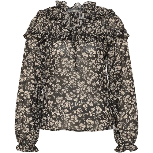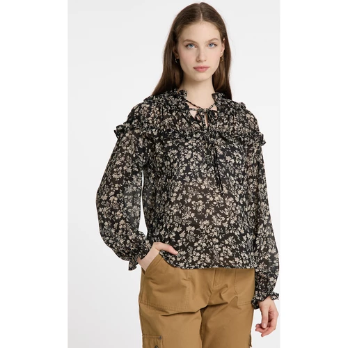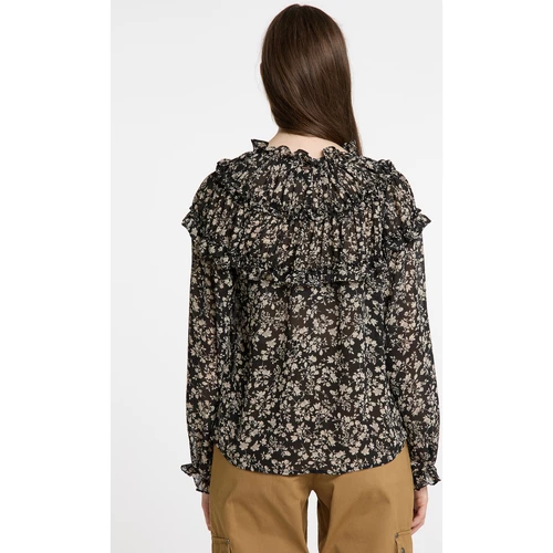 Ein zartes Blütendessin definiert den romantischen Look der DreiMaster Vintage Bluse. Unterstützt wird das Design dabei durch den hochgeschlossenen Rüschenkragen, der mit zwei Bindebändern gehalten wird wird sowie durch die darunterliegenden Rüschen auf Brusthöhe. Das leichte, semitransparente Material trägt sich unkompliziert und vollendet das Gesamtbild. Wir tragen den femininen Romantik-Style mit Vorliebe zu stylishen Boots und derben Denim.