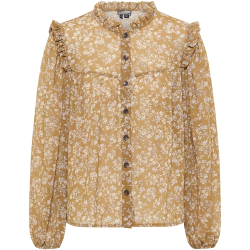 Ein zartes Blütendessin definiert den romantischen Look der DreiMaster Vintage Bluse. Unterstützt wird das Design dabei durch den hochgeschlossenen Rüschenkragen sowie durch die kleinen Rüschen an der Schulter. Das leichte, semitransparente Material trägt sich unkompliziert und vollendet das Gesamtbild. Wir tragen den femininen Romantik-Style mit Vorliebe zu stylishen Boots und derben Denim.