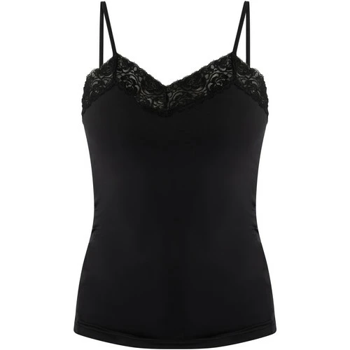 Ein Top im Lingerie-Stil darf als Basic nicht fehlen, denn es punktet solo ebenso stark, wie als Unterzieher, ganz besonders wenn ein bisschen Spitze hervorblitzt. Das leichte, dehnbare Material ist mit floraler Spitze verziert und schmeichelt eine Silhouette, die Sie jederzeit stilvoll kleidet.