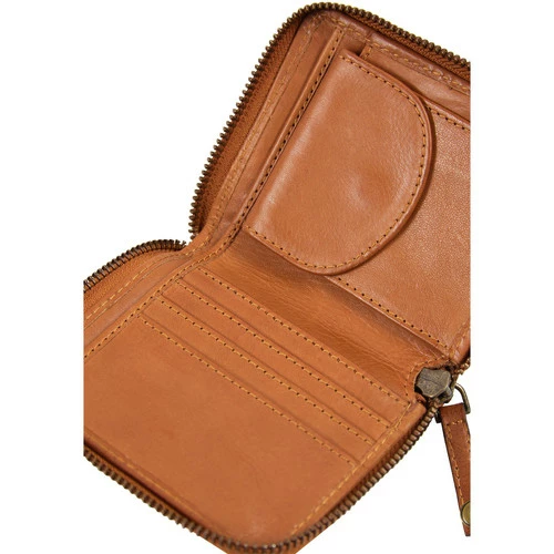 Das Portemonnaie von DreiMaster Vintage ist aus einem feinen, geschmeidigen Glattleder gefertigt, dass durch diverse Waschungen veredelt wurde, sodass es den typischen Vintage-Stil erhält. Wird der Reißverschluss geöffnet, werden vier Kartenfächer, ein Münzfach mit Druckknopf sowie ein Geldscheinfach sichtbar. Auf der Vorderseite verfeinert die Logo-Prägung das Erscheinungsbild. Maße: 11cm x 2cm x 10cm