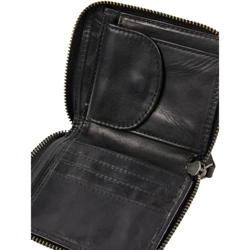 Das Portemonnaie von DreiMaster Vintage ist aus einem feinen, geschmeidigen Glattleder gefertigt, dass durch diverse Waschungen veredelt wurde, sodass es den typischen Vintage-Stil erhält. Wird der Reißverschluss geöffnet, werden vier Kartenfächer, ein Münzfach mit Druckknopf sowie ein Geldscheinfach sichtbar. Auf der Vorderseite verfeinert die Logo-Prägung das Erscheinungsbild. Maße: 11cm x 2cm x 10cm