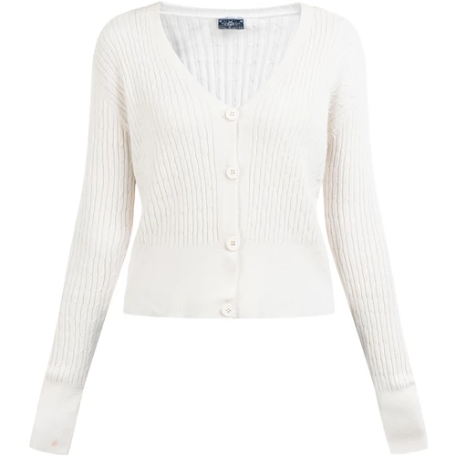 Dieser Cardigan von DreiMaster Maritim ist aus einem weichen Garngemisch mit hohem Viskosanteil in Italien gefertigt. Neben einem dezenten Zopfstrickmuster wird das Modell durch die Cropped-Silhouette akzentuiert. Die vier großen Knöpfe setzen die V-Ausschnittlinie dekorativ fort und bilden so ein schönes Dekolleté.