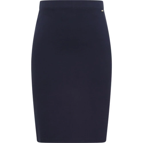 Ein zeitloses und elegantes Modell wählen Sie mit dem Pencilskirt von DreiMaster Klassik. Der Rock ist aus einem festem und schwerem Jersey-Stretch gefertigt, hat einen bequemen, elastischen Bund und einen Schlitz am Saum, was dem Rock eine leicht verführerische Note verleiht. Die körpernahe Fasson passt ideal zu Bluse und Pumps.