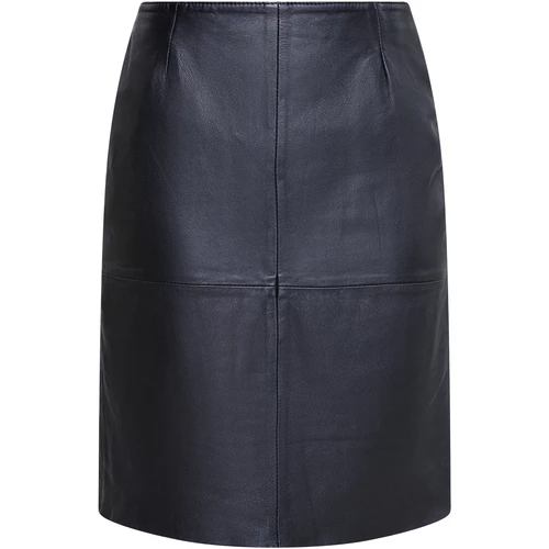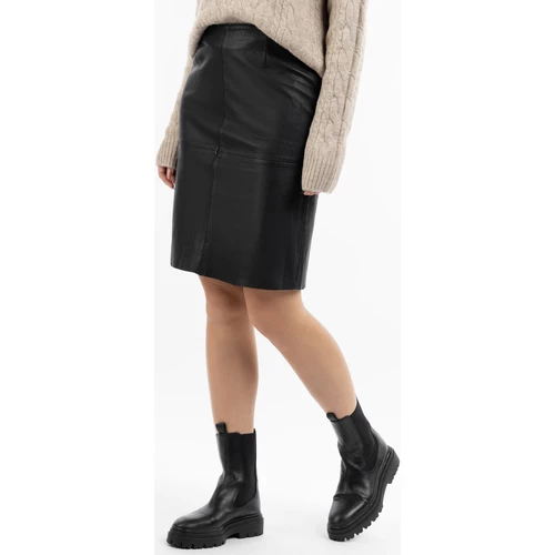 Aus einem butterweichen Lammleder in Italien gefertigt, verleiht der knielange Lederrock von DreiMaster Vintage Ihren Looks den letzten Schliff. Die klassische, gerade Silhouette wird mit den sichtbaren Nähten aufgelockert, ein verdeckter Reißverschluss und ein rückseitiger Gehschlitz runden das Modell ab.