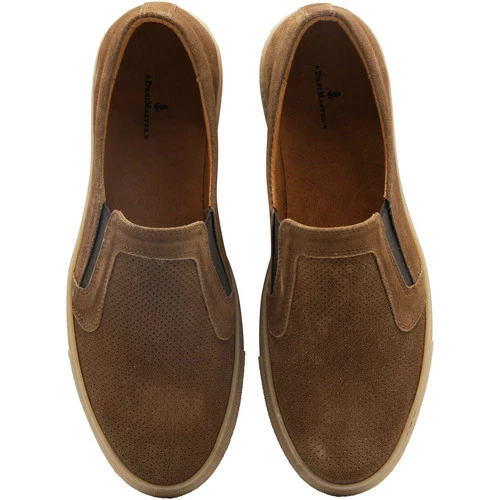 Sportlich-lässig zeigen sich die gelochten Veloursleder Slip-Ons der Marke Mo. Einfaches Reinschlüpfen sichern dabei die elastischen Einsätze an den Spannseiten. Innenfutter und Innensohle sind ebenfalls aus weichem Rindsleder gefertigt, während die Sohle aus bequemen Gummi besteht.