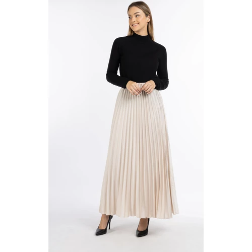 Dieser elegante Maxirock von DreiMaster Klassik wurde in Italien aus einem weichen, fließenden und leicht glänzenden Material gefertigt und allover mit femininen Plisseefalten versehen. Das Design verfügt über einen hohen Bund, in den ein bequemes elastisches Band eingearbeitet wurde. Tragen Sie sowohl T-Shirts als auch Blusen dazu.