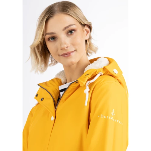 Die Sicherheit, auch an regnerischen und kalten Tagen gut geschützt aus dem Haus gehen zu können, bietet Ihnen dieser Dreimaster Regenmantel mit weichem Teddy-Innenfutter. Das Material ist beschichtet und somit wind- und wasserdicht. Dazu kommen die versiegelten Nähte, die keinerlei Nässe durchdringen lassen. Die große, ebenfalls mit Teddyfell gefütterte Kapuze hat einen Tunnelzug mit Kordel, durch die Sie bei bedarf die Kapuze enger ziehen können. Die Druckknopfleiste verdeckt den Reißverschluss geschickt. Seitlichen Pattentaschen, optimieren die Jacke in puncto Funktionalität. Mit der Taillenkordel kann der Mantel auf eine taillierte Silhouette gezogen werden. Ein angenehmes Tragegefühl erzeugt das weiche Teddy-Innenfutter.