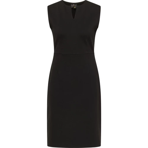 Ganz gleich, ob Business-Meeting oder eine Verabredung zum Lunch, das klassische Etuikleid von DreiMaster Klassik setzt Sie souverän in Szene. Es ist zeitlos und elegant und je nach Wahl der Accessoires ein vielseitiger Begleiter. Gefertigt aus einem festen Viskose-Stretchmaterial betont es, dank Elasthan-Anteil, die Fasson körperbetont. Ein Rundhalsausschnitt mit kleinem V-Ausschnitt sorgt für ein hübsches Dekolleté und die sichtbare Taillennaht für eine feminine Silhouette. Tragen Sie das Kleid am Tag unter einem Blazer oder am Abend mit auffälligem Schmuck, dann haben Sie von Office bis Oper einen perfekter Begleiter.