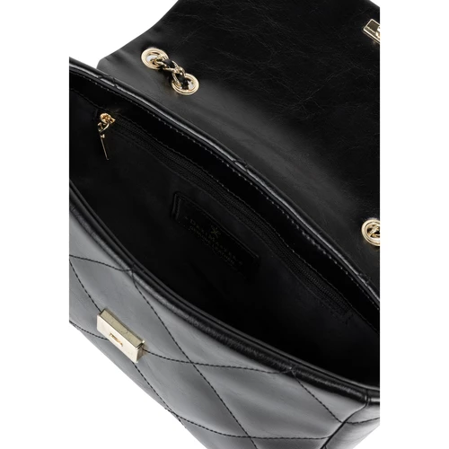 Die Taschenkollektion von DreiMaster Klassik erhält mit dieser charmanten Schultertasche ein neues Modell. Sie wurde aus gestepptem Glattleder gefertigt und mit einer goldfarbenen Logo-Schrift und einem Kettenglieder-Element verziert. Sie hat ein geräumiges Innenleben mit einer kleinen Reißverschlusstasche für Ihre wichtigsten Essentials. ergänzen spielerisch das klassische Design. Maße: 26cm x 17,5cm x 6,5cm (BxHxT)