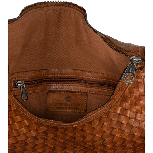 Puren, authentischen Retro-Charme kombiniert diese Handtasche von DreiMaster Vintage zu Ihrem Outfit. Mit ihrer Vorderseite aus geflochtenem Leder, sowie der naturbelassenen Verarbeitung insgesamt atmet sie vollkommen den authentischen Stil der ´60er und ´70er Jahre. Sie kann dabei leger als Umhänge- wie auch als Schultertasche getragen werden. Der lange Tragegurt ist durch Karabiner abnehmbar, der Schultergurt ist fest und angenehm breit vernäht. Stauraum bietet die Tasche mit einem großen Reißverschluss-Innenfach, sowie zwei kleinen Stecktaschen. Auf der Rückseite gibt es mit einem äußeren Reißverschlussfach eine weitere Verstaumöglichkeit. Als echtes Naturprodukt weist jede Tasche eine eigene Maserung und Unebenheiten auf, wie sie nur echtes Leder hat und auszeichnet. Sie erhalten also ein Accessoire mit vollem Vintage- sowie ganz individuellem Charakter. Maße: 40cm x 31,5cm x 3cm (BxHxT)