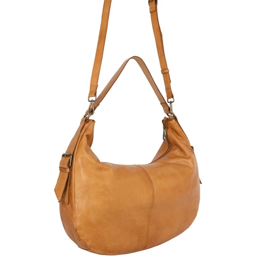 Puren, authentischen Retro-Charme kombiniert diese Handtasche von DreiMaster Vintage zu Ihrem Outfit. Sie kann dabei leger als Umhänge- wie auch als Schultertasche getragen werden. Der lange Tragegurt ist durch Karabiner abnehmbar, der Schultergurt ist fest und angenehm breit vernäht. Stauraum bietet die Tasche mit einem großen Reißverschluss-Innenfach, sowie zwei kleinen Stecktaschen. Als echtes Naturprodukt weist jede Tasche eine eigene Maserung und Unebenheiten auf, wie sie nur echtes Leder hat und auszeichnet. Sie erhalten also ein Accessoire mit vollem Vintage- sowie ganz individuellem Charakter. Maße: 43cm x 40cm x 5,5cm (BxHxT)