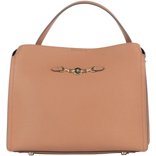 In ihrer puristischen Form überzeugt die Henkeltasche von DreiMaster Klassik. Das elegante Accessoire ist durch das weiche, genarbte Leder geprägt und mit farblich abgestimmten Nähten versehen. Die mittig angesetzte goldfarbene Hardware mit logoverziertem Metallplättchen setzt dabei wertige Akzente. Darüber hinaus besitzt diese Henkeltasche innen eine Reißverschlusstasche, die Ihre wichtigsten Essentials verwahrt. Tragen Sie das Accessoire sowohl mit Henkel als auch mit den abnehmbaren Schulterriemen. Maße: 29cm x 23cm x 13cm (BxHxT)