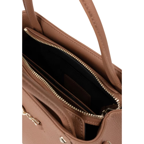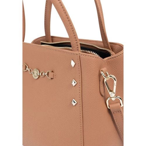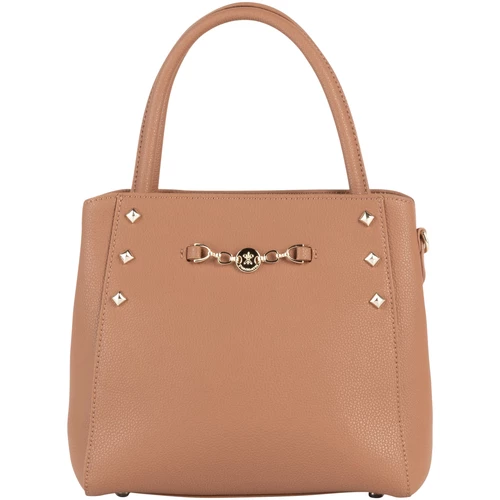 In ihrer eleganten Form überzeugt die Henkeltasche von DreiMaster Klassik. Das edle Accessoire ist durch das weiche, genarbte Leder geprägt und mit farblich abgestimmten Nähten versehen. Die mittig angesetzte goldfarbene Hardware mit logoverziertem Metallplättchen sowie die Pyramidennieten setzen dabei wertige Akzente. Darüber hinaus besitzt diese Henkeltasche innen eine Reißverschlusstasche, die Ihre wichtigsten Essentials verwahrt. Tragen Sie das Accessoire am Henkel oder mit dem abnehmbaren Schulterriemen. Maße: 22,5cm x 22cm x 14cm (BxHxT)