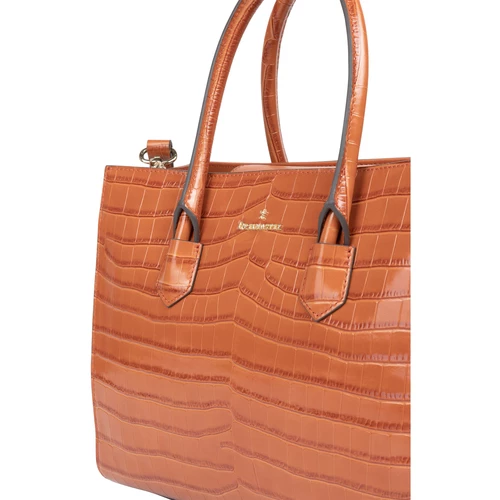 Mit der eleganten Tote von DreiMaster Klassik können Sie Ihre wichtigsten Utensilien stilvoll transportieren. Sie ist aus edlem Leder in Kroko-Optik gefertigt und verfügt über eine verdeckte Lasche mit Magentverschluss, die Ihre Essentials sichert. Goldfarbene Details sowie ein metallenes Logo auf der Vorderseite setzen weitere Akzente, während der geräumige Innenraum mit seinem Baumwollfutter und einer Reißverschlusstasche für viel Stauraum sorgt. Maße: 33cm x 25cm x 15cm (BxHxT)