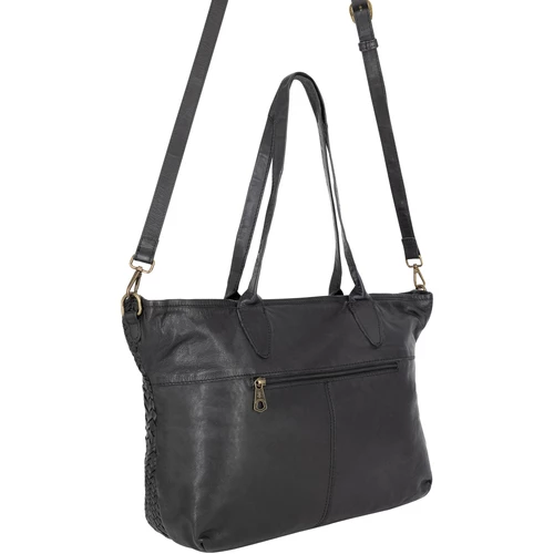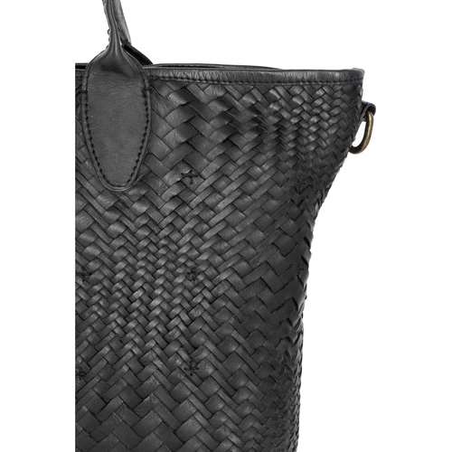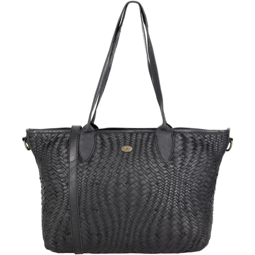 Das sehr weiche Rindsleder dieser DreiMaster Vintage Handtasche wurde auf der Vorderseite aufwendig geflochten, wodurch ein ganz individueller Look entsteht. Dank diverser Lederwaschungen zeigt sie einen lässigen Vintage-Charakter, der mit einigen Unregelmäßigkeiten im Leder der Tasche eine ganz einzigartige Note verleiht. Das softe Innenfutter ist aus Baumwolle gefertigt und bietet neben Steckfächern und einer Reißverschlusstasche viel Platz für alle wichtigen Essentials. Mit dem kleinen Henkel kann sie ganz nonchalant in der Hand getragen werden. Ein graviertes Logo-Patch aus Metall schmückt die Frontseite. Maße: 46cm x 29,5cm x 4cm (BxHxT)