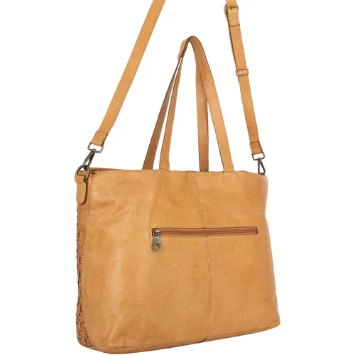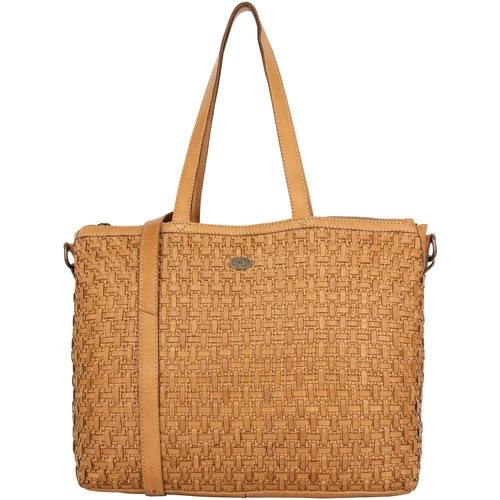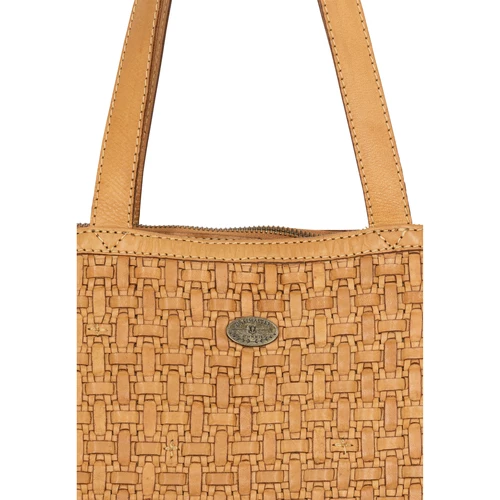 Das sehr weiche Rindsleder dieser DreiMaster Vintage Handtasche wurde auf der Vorderseite aufwendig geflochten, wodurch ein ganz individueller Look entsteht. Dank diverser Lederwaschungen zeigt sie einen lässigen Vintage-Charakter, der mit einigen Unregelmäßigkeiten im Leder, der Tasche eine ganz einzigartige Note verleiht. Die zwei geteilten Hauptfächer sind mit einem soften Innenfutter aus Baumwolle gefertigt und bieten neben Steckfächern und einer Reißverschlusstasche viel Platz für alle wichtigen Essentials. Mit dem kleinen Henkel kann sie, ganz nonchalant in der Hand oder mit dem langen, abnehmbaren Schulterriemen auch lässig crossbody getragen werden. Ein graviertes Logoplate aus Metall schmückt die Frontseite. Maße: 43cm x 29cm x 11cm (BxHxT)