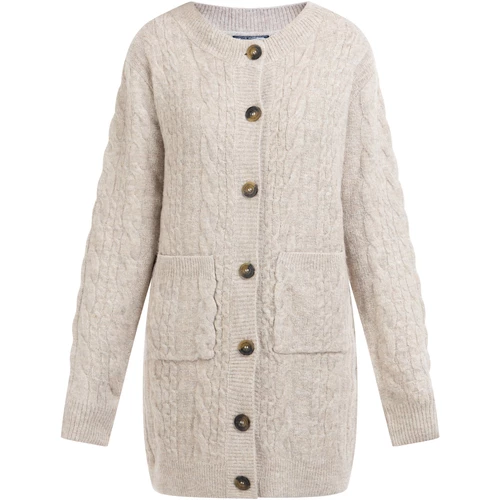 Klassisch-lässiger Zopfstrick: Der gediegene Long-Cardigan von DreiMaster Vintage wird mit seiner lockeren, langen Passform und den gebrandeten Knöpfen in Hornoptik zum winterlichen Lieblingsteil. Die aufgesetzten Fronttaschen und die abschließenden Rippstrickbündchen vervollständigen das gelungene Design.