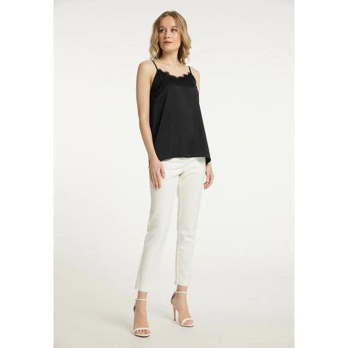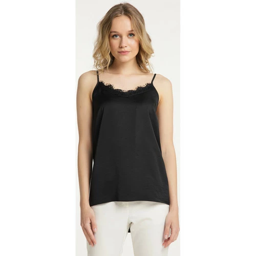 About You Material: Detail: 98% Polyester, 2% Elasthan;Futter: kein Futter/no lining;Obermaterial: 52% Lyocell, 48% PolyesterAnlass: temps libreArtikelnummer: 31316055Ausschnitt: Col en VBauschkraft: non spécifiéBreite: 4,5cmDetails: dentelleFan-Artikel: nonFarbe (Produkt): SchwarzFutter: sans doublureGesamtlänge/Rückenlänge Größe S: 52 cmGrößenflag: taille normalIsolierung: Weitere/ohne WärmeisolierungKragen: aucun / sans objetLagen: non spécifiéLieferzeit ab: _Lieferzeit bis: _Länge: moyenMaterial: 100% polyesterMaterial Detail: 98% Polyester, 2% ElasthanneMaterial Oberstoff: 52% Lyocell, 48% PolyesterMaterial-Eigenschaft: AutreMuster: uniOberteillänge: normalPassform: normalPflegehinweise: Lavage à 30° en cycle doux, ne pas blanchir, ne pas sécher en machine, repasser à froid, ne pas nettoyer, ne pas utiliser d’adoucissant, ne pas faire tremperProdukttyp: topSaison: hw21Saum: ourlet profiléSondergröße: non spécifiéStil Strick: topTaschen: aucun / sans objetTechnologie Outdoor: Weitere/ohne TechnologieTextiltechnologie: weitere/ohne TechnologieTrägerart: SpaghettiVerschluss: aucun / sans objetZielgruppe: femmeslieferfenster: _Ärmelart: Sans manchesÄrmellänge: Sans manchesFarbe: noireTop im Lingerie-StilZarte Spitze am AusschnittSangles spaghetti réglablesGummizug im RückenUn matériau chatoyantPartie arrière plus longue que la partie avant