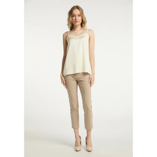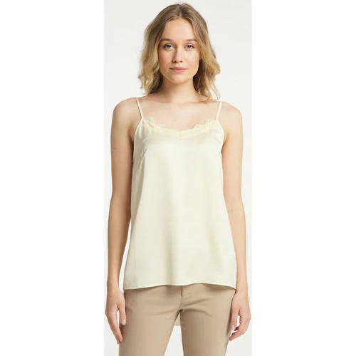 About You Material: Detail: 98% Polyester, 2% Elasthan;Futter: kein Futter/no lining;Obermaterial: 52% Lyocell, 48% PolyesterAnlass: temps libreArtikelnummer: 31316056Ausschnitt: Col en VBauschkraft: non spécifiéBreite: 4,5cmDetails: dentelleFan-Artikel: nonFarbe (Produkt): WollweissFutter: sans doublureGesamtlänge/Rückenlänge Größe S: 52 cmGrößenflag: taille normalIsolierung: Weitere/ohne WärmeisolierungKragen: aucun / sans objetLagen: non spécifiéLieferzeit ab: _Lieferzeit bis: _Länge: moyenMaterial: 100% polyesterMaterial Detail: 98% Polyester, 2% ElasthanneMaterial Oberstoff: 52% Lyocell, 48% PolyesterMaterial-Eigenschaft: AutreMuster: uniOberteillänge: normalPassform: normalPflegehinweise: Lavage à 30° en cycle doux, ne pas blanchir, ne pas sécher en machine, repasser à froid, ne pas nettoyer, ne pas utiliser d’adoucissant, ne pas faire tremperProdukttyp: topSaison: hw21Saum: ourlet profiléSondergröße: non spécifiéStil Strick: topTaschen: aucun / sans objetTechnologie Outdoor: Weitere/ohne TechnologieTextiltechnologie: weitere/ohne TechnologieTrägerart: SpaghettiVerschluss: aucun / sans objetZielgruppe: femmeslieferfenster: _Ärmelart: Sans manchesÄrmellänge: Sans manchesFarbe: blanc casséTop im Lingerie-StilZarte Spitze am AusschnittSangles spaghetti réglablesGummizug im RückenUn matériau chatoyantPartie arrière plus longue que la partie avant
