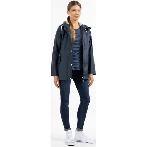 An regnerischen Tagen bietet diese klassische Regenjacke von DreiMaster Maritim wunderbaren Schutz. Das beschichtete Material ist wind- und wasserdicht und lädt bei allen Witterungslagen zu einem Spaziergang ein. Die leicht taillierte, mittellange Form bietet mit der breiten Kapuze und den stylishen Kordeln einen zusätzlichen Regenschutz. Auch die Druckknopfleiste über dem Reißverschluss sowie die schrägen Pattentaschen optimieren die Jacke in puncto Wetterfestigkeit. Ein angenehmes Tragegefühl erzeugt das weiche Jersey-Innenfutter. Das labeltypische Ankermotiv auf den Druckknöpfen steht sinnbildlich für maritimes Flair und Design.