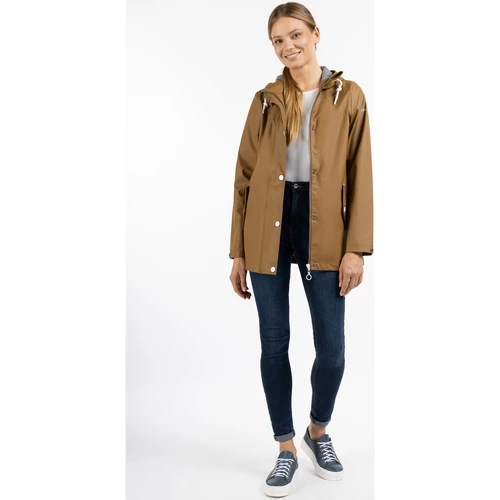 An regnerischen Tagen bietet diese klassische Regenjacke von DreiMaster Maritim wunderbaren Schutz. Das beschichtete Material ist wind- und wasserdicht und lädt bei allen Witterungslagen zu einem Spaziergang ein. Die leicht taillierte, mittellange Form bietet mit der breiten Kapuze und den stylishen Kordeln einen zusätzlichen Regenschutz. Auch die Druckknopfleiste über dem Reißverschluss sowie die schrägen Pattentaschen optimieren die Jacke in puncto Wetterfestigkeit. Ein angenehmes Tragegefühl erzeugt das weiche Jersey-Innenfutter. Das labeltypische Ankermotiv auf den Druckknöpfen steht sinnbildlich für maritimes Flair und Design.