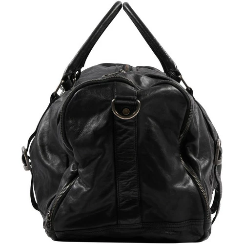 Mit dieser weichen Ledertasche von DreiMaster Vintage haben Sie den perfekten Weekender gefunden. Das softe Modell wurde aus glattem Leder gefertigt und bietet sensationell viel Stauraum für Ihren nächsten Kurztrip. Dank diverser Lederwaschungen weist die Tasche einen ganz individuellen Vintage-Look auf. Der großzügige Innenraum ist mit Baumwolle gefüttert, hat Steck- und Reißverschlusstaschen. An beiden Seiten sind noch weitere Taschen eingearbeitet, ebenso an Front und Rückseite. Die derben Beschläge im Vintage-Style verleihen der Reisetasche eine ganz besondere Note. Die angenehme Größe kann bequem am Henkel oder am Schulterriemen getragen werden. Ein ausgesprochen stilvolle Alternative zu Koffer und Co. sowie ein wirkungsvolles Accessoire Ihrer saisonalen Garderobe. Maße: 62cm x 22cm x 31cm (LxBxH)